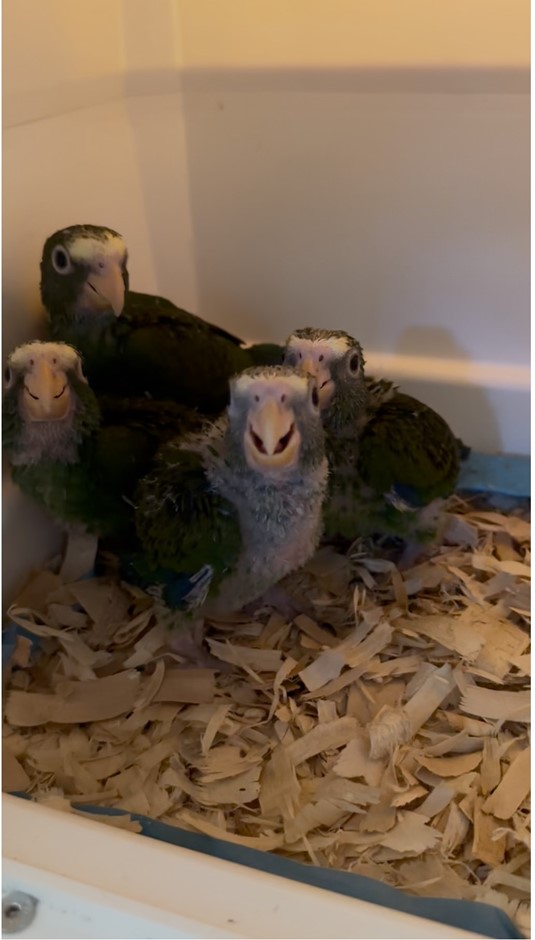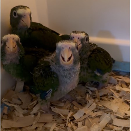 The white-capped pionus with their adorable white cap, beautiful blue and dark green body, striking red tail feathers and friendly demeanor make fantastic companions for bird lovers of all ages. Known for their intelligence, playful nature, and quieter vocalizations, these charming birds are perfect for anyone seeking a delightful avian companion. At Woodland Aviary, we are dedicated to promote ethical aviculture and support lifelong, enriching bonds between birds and their companions. We currently have three White-capped Pionus chicks available.