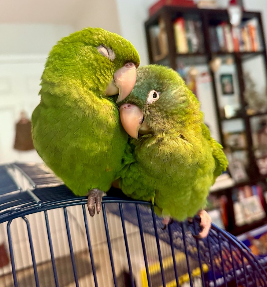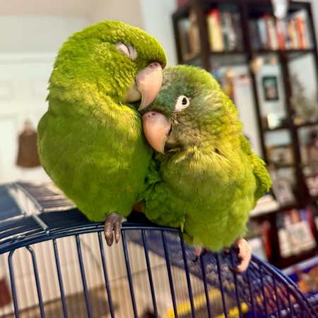 Cherry Heads! These babies have so much personality. They're very playful. Very sweet. Flight trained, they will both fly right to you. Very tame babies!