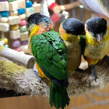 Meet our adorable Black-headed Caique! Those little sweethearts is disease tested, DNA sexed, and leg banded — healthy, playful, and full of personality. Ready to brighten up a new home today