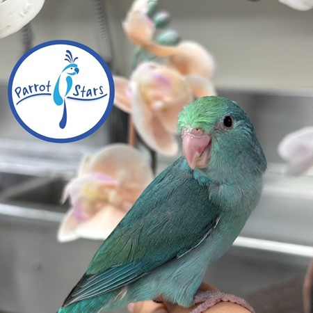 Baby Turquoise Pacific Parrotlet (Forpus coelestis) Available! Parrotlets are one of the smallest "true parrots". Parrotlets come in a wide variety of color mutations. They can be a great starter bird for new bird owners. Don't let their small size fool you, because they have giant personalities and are extremely intelligent. They are bold, sassy, sweet and affectionate. Some can even learn to talk. At Parrot Stars we focus on education, nutrition, and conservation. We work very hard to help educate our customers on parrot companionship. Prior to taking a bird home, we will provide information on proper housing, creating a safe environment, diet, behavior, hormones and much more. No question will go unanswered. Every hand fed baby is weaned on to a high variety diet. They are weaned onto fruits and veggies, a soak and sprout mix made here in store, high variety seed mix that is also made in store, and naturally colored pellets. If you have questions regarding this baby, or any others that we have available, please give us a call! Feel free to follow us on Facebook @parrotstars for more pictures, videos and information.