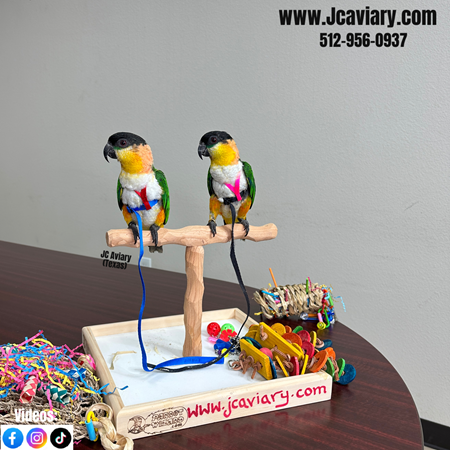 Incredibly sweet, hand-fed, tame and well trained black-headed caique babies ready now for their forever homes. They are weaned on a healthy diet of organic pellets and vegetables. All our babies are very well socialized, tame and sweet. Please visit our website for full detailed info on these babies -- www.Jcaviary.com-- Please call us to reserve your baby !! 512-956-0937 - Shipping available via Delta Airlines-- All babies are DISEASE TESTED and come with avian vet documents as well. (Deposit: $800 required to reserve each baby) Videos available on Facebook: https://facebook.com/jcaviary