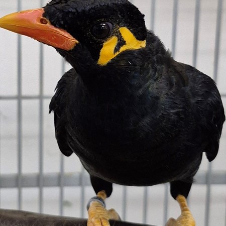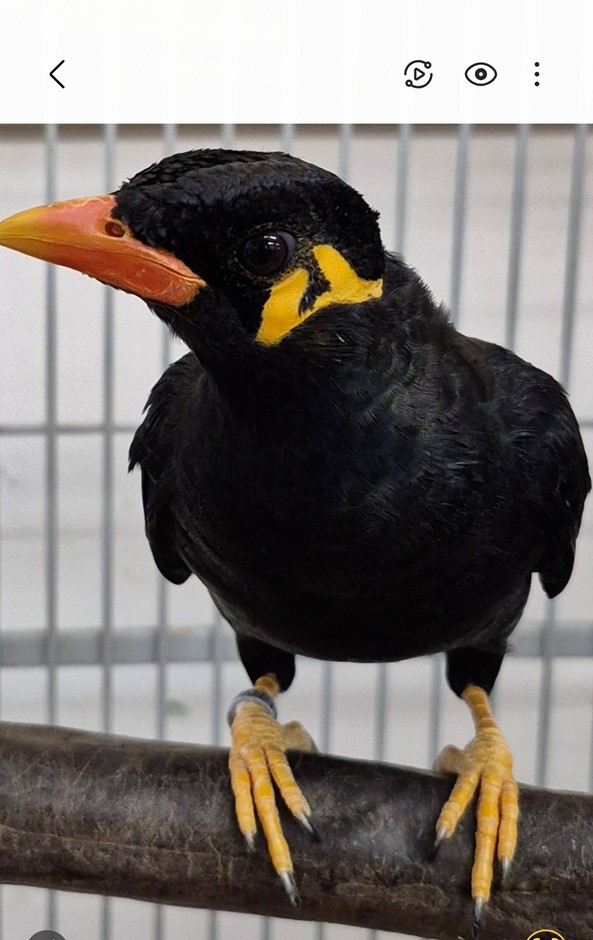 Myna Bird baby - 5 months old - now available at Tropic Island Bird and Supply in Lemon Grove CA Call or text me at 619-447-4171 for more information