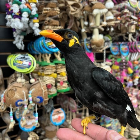 Hand fed tame Greater Indian Hill Mynahs, this species of softbills are very hard to come by. The Indian Hill Mynah is an extremely great talker and mimicker. We offer financing go to birdmansparrots.com and apply today or call 773-317-3785.