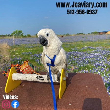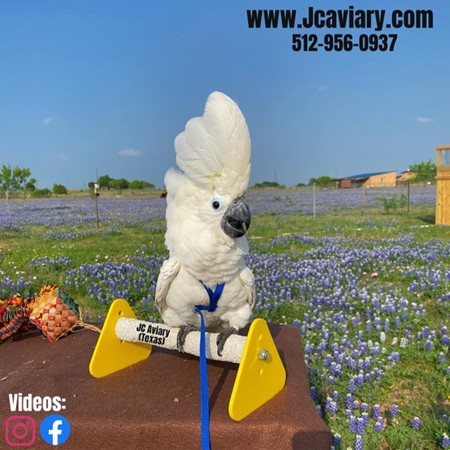 Incredibly, hand-fed, tame sweet Umbrella Cockatoo ready now for his forever home. He is weaned on organic pellets and veggies. All our babies are very well socialized, tame and sweet. Please visit our website for full detailed info on these babies -- www.Jcaviary.com-- Please call us to reserve your baby !! 512-956-0937 - Shipping available via Delta Airlines-- All babies are DISEASE TESTED and come with avian vet documents as well. (Deposit: $2500 required to reserve each baby) Videos available on Facebook: https://facebook.com/jcaviary