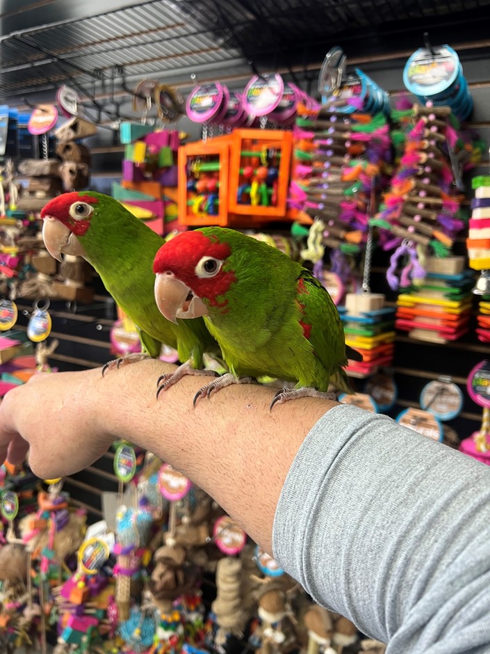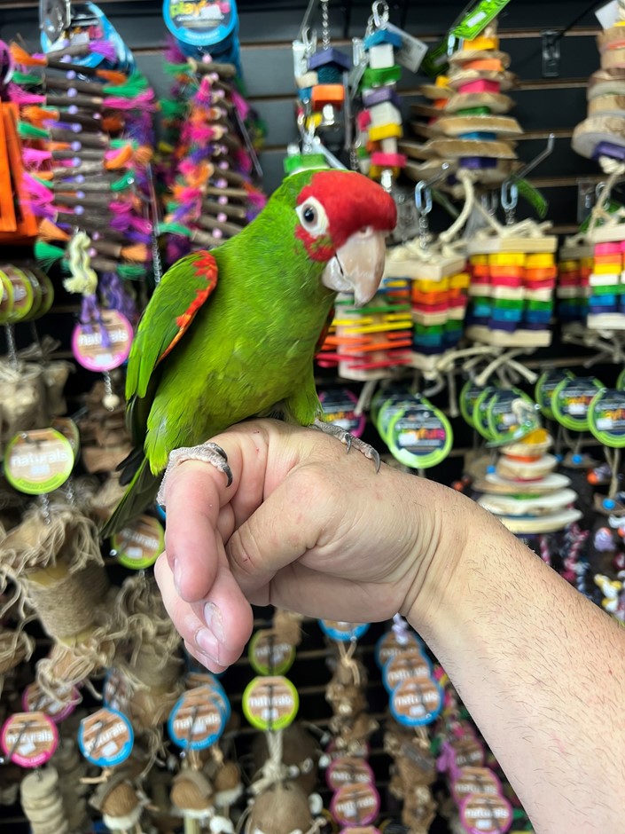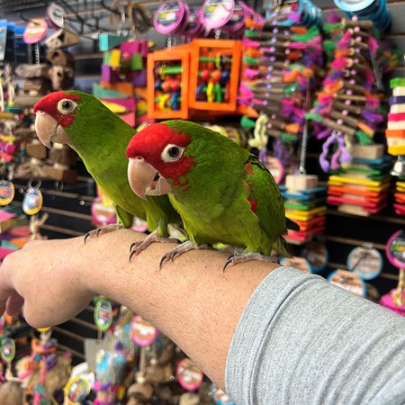 Hand fed semi tame 2024 hatch Cherry Head Conures available. They are very goofy and curious birds but they will need a little work to tame down. Call us for more info 773-317-3785.