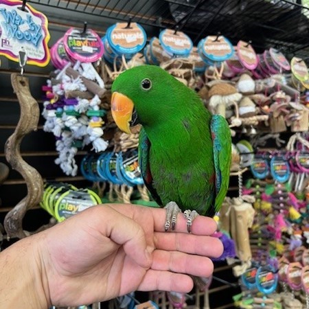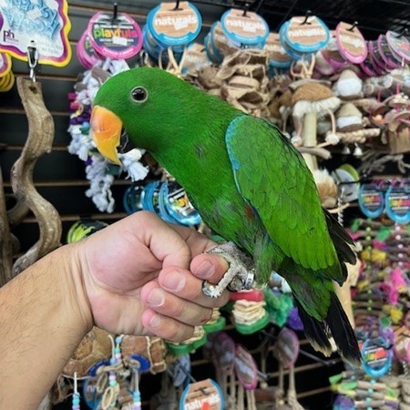 Hand fed and very tame and friendly baby Solomon Island Eclectus male available. We offer financing go to birdmansparrots.com and apply today or call 773-317-3785.