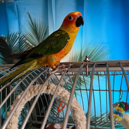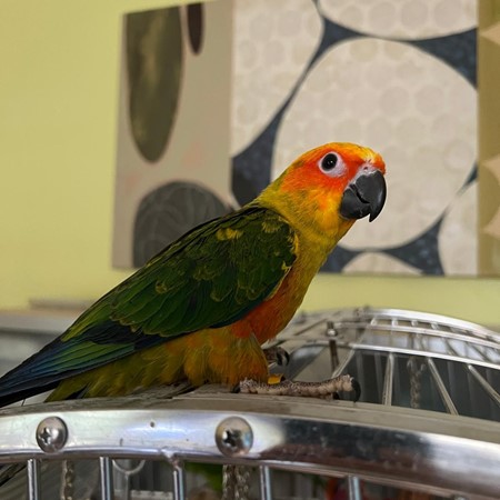 Hand-fed, hand-tamed, almost weaned, disease-tested, and banded — a bright, loving companion ready soon for a new home!