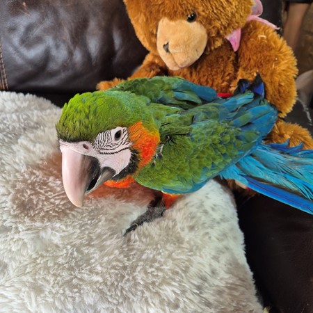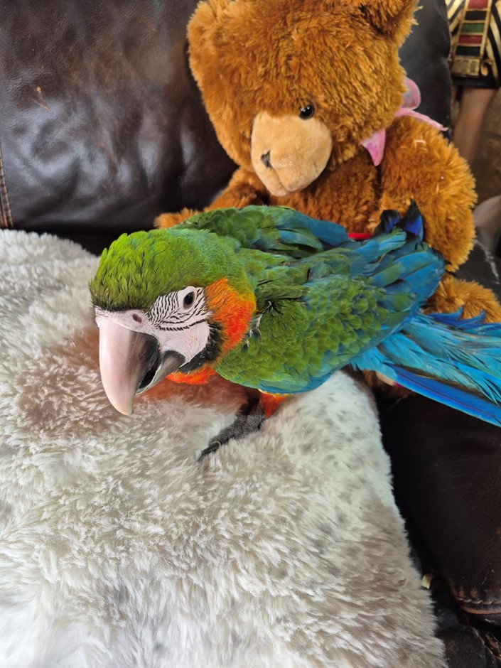 Gorgeous Harlequin Macaw baby now available at Tropic Island Bird and Supply in Lemon Grove CA Call 619-447-4171 for more information