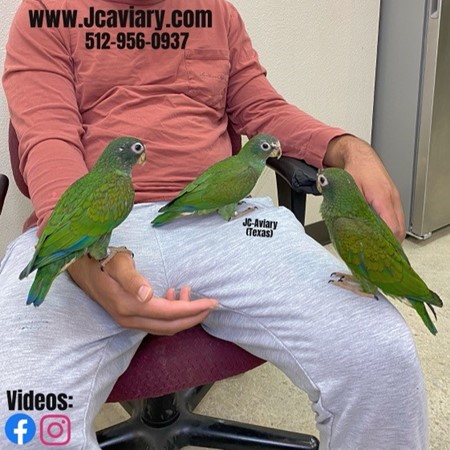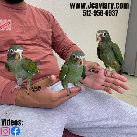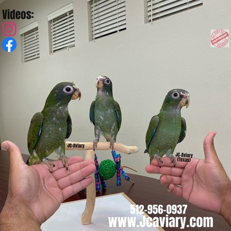 Incredibly sweet and fully trained White capped pionus babies ready now for their forever homes. They are weaned on a healthy diet of organic pellets and vegetables. All our babies are very well socialized, tame and sweet. Please visit our website for full detailed info on these babies -- www.Jcaviary.com-- Please call us to reserve your baby !! 512-956-0937 - Shipping available via Delta Airlines-- All babies are DISEASE TESTED and come with avian vet documents as well. (Deposit: $1500 required to reserve each baby) Videos available on Facebook: https://facebook.com/jcaviary