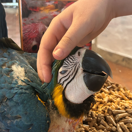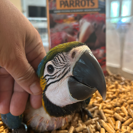 We have a very sweet baby blue and gold macaw baby that we are looking to match with the right home. This bird is a true gem!