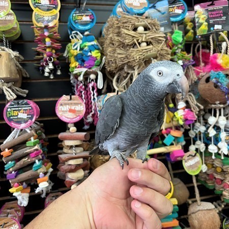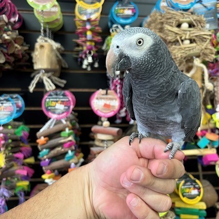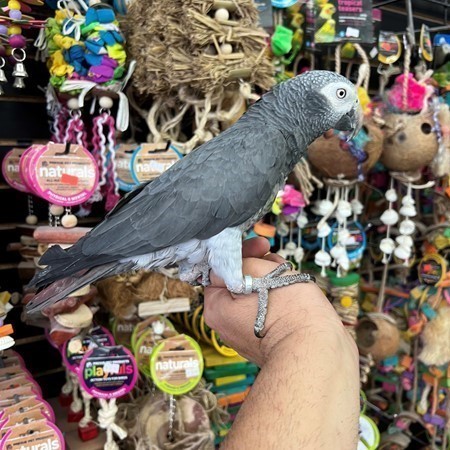 Sweet and tame adult Timneh African Grey available. For more info call 773-317-3785.
