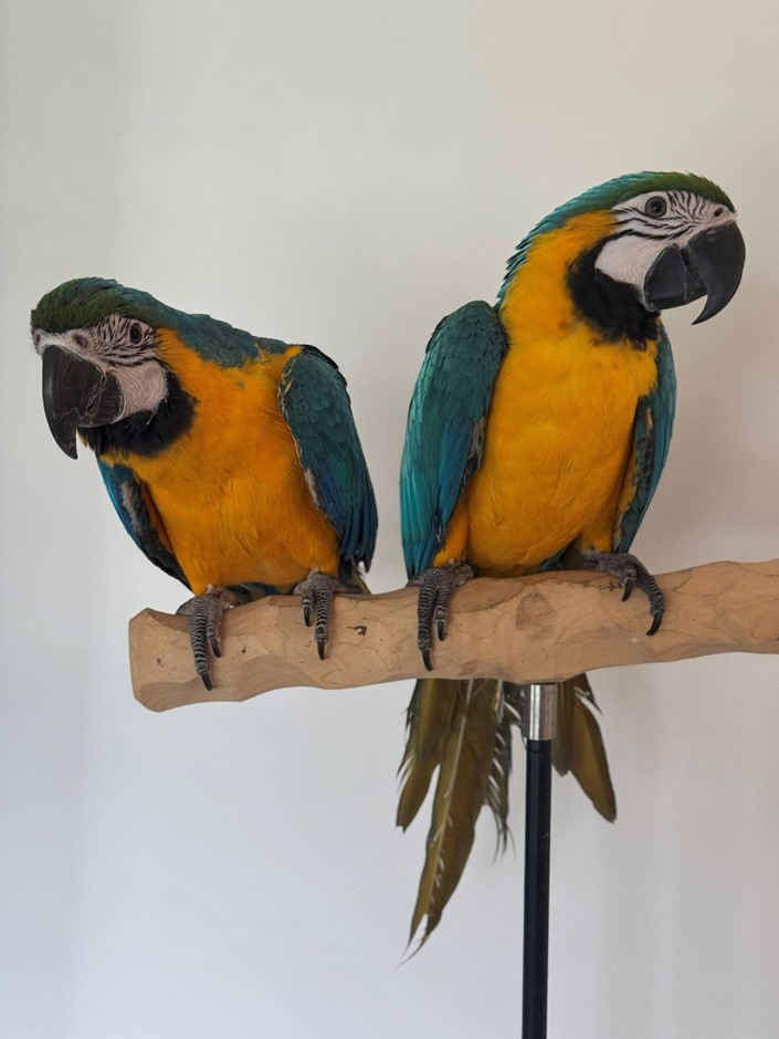 There's always a favorite in a clutch of babies.... This girl has hit the mark. She loves on me so much. First thing she does to stretch her wings is fly to my head or straight to me. As soon as I set her down, she finds away to get right back to me. She's a total love bug. She loves to beak wrestle, get a cuddle, and have a treat. I'm able to flip her onto her back and love up on her. She is very near to being fully weaned. She is a hard player/ flyer and has broken her tail feathers... She is pictured on the left.