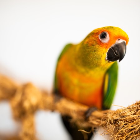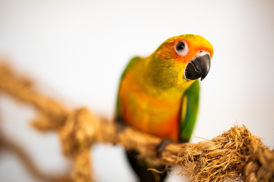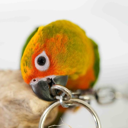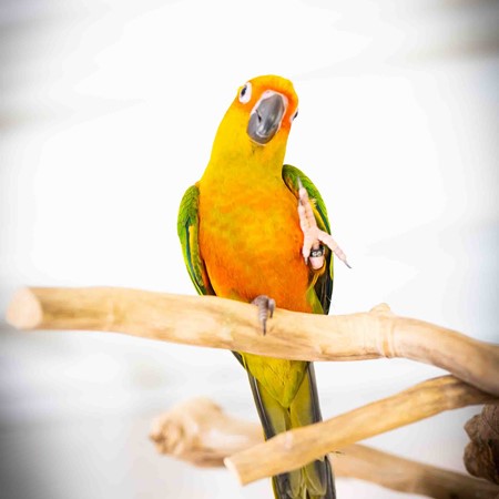 $200 off for a limited time! . A Four Month old hand-raised Red Factor baby Sun Conure. Lava loves getting one-on-one attention, is very active and very energetic, and loves flying.