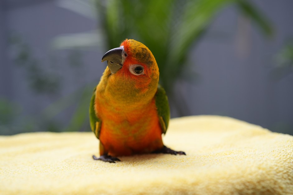 Adopt Adorable Baby Lava, a Three Month old hand-raised Red Orange Factor baby Sun Conure. Lava has been hand raised by a loving family and requires lots of love and individual attention. Lava is very active and very energetic and loves learning new things. Black Band id: (BKY NYC 05) - contact (646) 875-8008 . info@brooklynyc.com . Hand Raised in Brooklyn, baby Lava is ready to find a loving home in NYC. This little one is a high-orange / red factor Sun Conure, and its personality is just as vibrant as its future colors.
