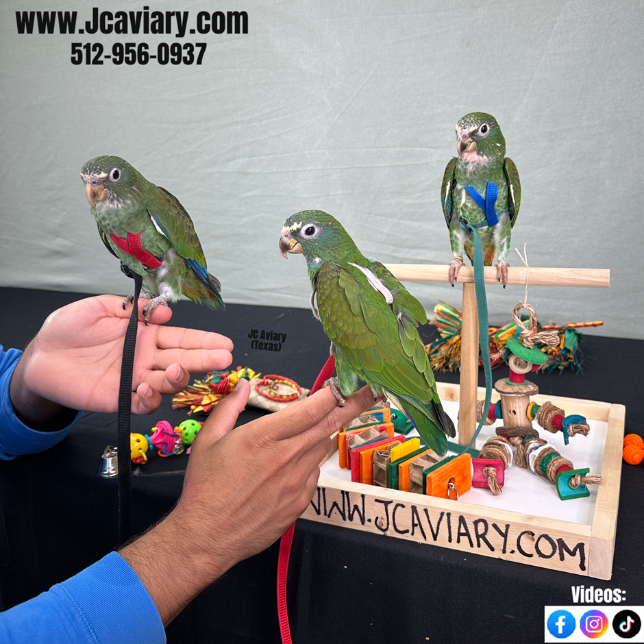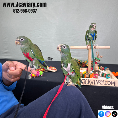 Incredibly sweet and fully trained White capped pionus babies ready now for their forever homes. They are weaned on a healthy diet of organic pellets and vegetables. All our babies are very well socialized, tame and sweet. Please visit our website for full detailed info on these babies -- www.Jcaviary.com-- Please call us to reserve your baby !! 512-956-0937 - Shipping available via Delta Airlines-- All babies are DISEASE TESTED and come with avian vet documents as well. (Deposit: $1500 required to reserve each baby) Videos available on Facebook: https://facebook.com/jcaviary