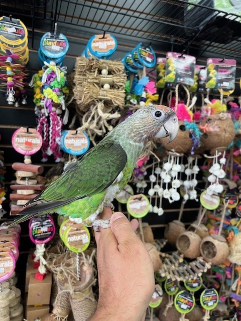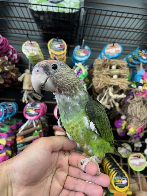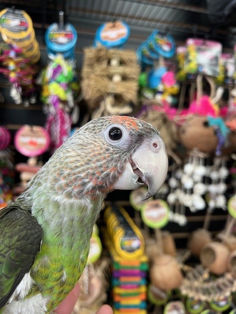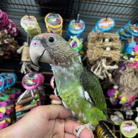 Just weaned and ready for its new home is a sweet baby dna tested female Cape Parrot. For more info call 773-317-3785.