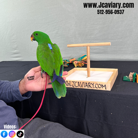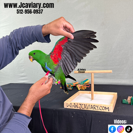 Incredibly sweet, hand-fed, tame and fully trained Male Eclectus baby ready now for his forever homes. He is weaned on a healthy diet of organic pellets and vegetables. All our babies are very well socialized, tame and sweet. Please visit our website for full detailed info on these babies -- www.Jcaviary.com-- Please call us to reserve your baby !! 512-956-0937 - Shipping available via Delta Airlines-- All babies are DISEASE TESTED and come with avian vet documents as well. (Deposit: $2500 required to reserve each baby) Videos available on Facebook: https://facebook.com/jcaviary