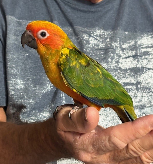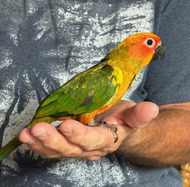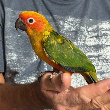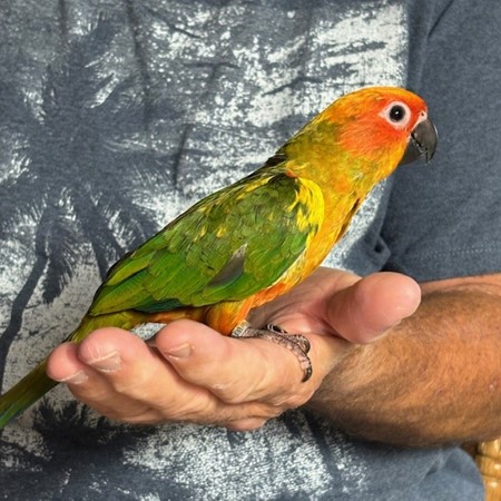 Sun Conure - DNA Male - $450 - recently weaned from being hand fed - now eating a pellet diet - ready to be shipped. Shipping is with Delta for $165 and the shipping container is $35. Payment through Zelle or PayPal. 124