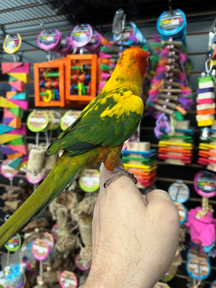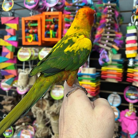 Just weaned is a sweet baby Sun Conure. For more info call 773-317-3785.