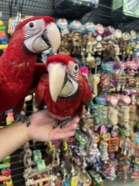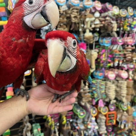 Just weaned and ready for its new is a baby Greenwing Macaw known as the "GENTLE GIANTS" these babies are big in size, they were pulled from the parents for hand feeding at 7 weeks old which makes them nice and big and healthy. They make great family pet companions as they are very social and cuddly birds. For more info call 773-317-3785.