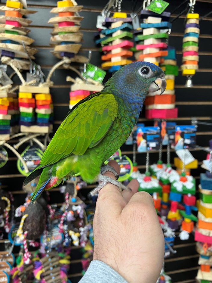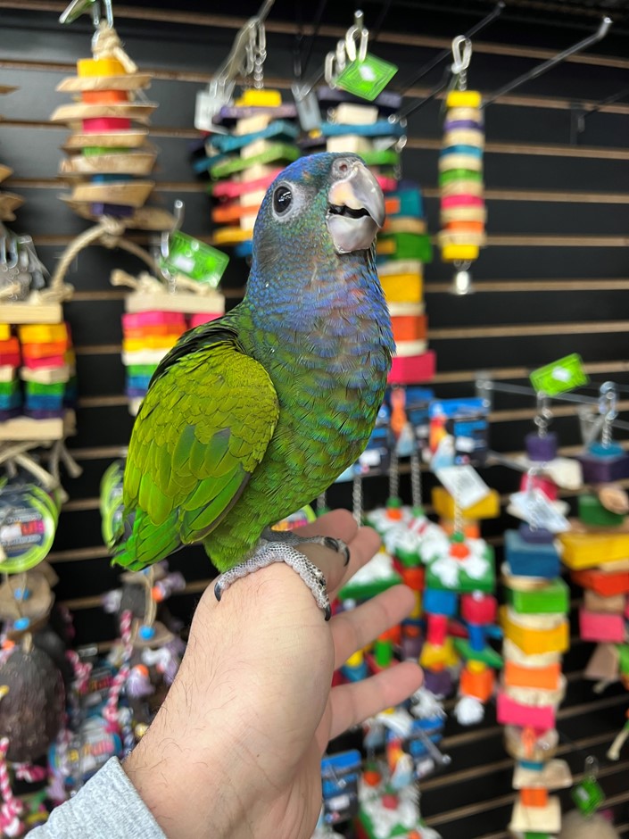 Currently hand feeding are sweet baby Blue Headed Pionus. This species of Pionus makes a great pet companion as they are laid back quiet birds, who can learn to talk and mimic sounds and are affectionate. For more info call 773-317-3785.