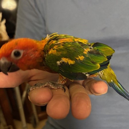 Red Factor Sun Conure - DNA Pending - being hand fed at this time - $700 weaned - will be weaned to eat a pellet diet - $50 deposit will hold this bird until it is weaned and eating well on its own and ready to be shipped. Shipping is with Delta for $165 and the shipping container is $35. Payment through Zelle or PayPal. 19