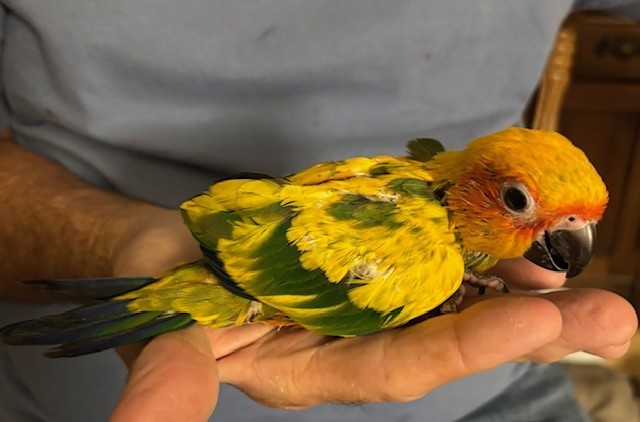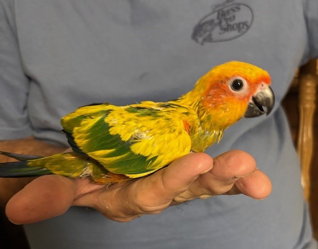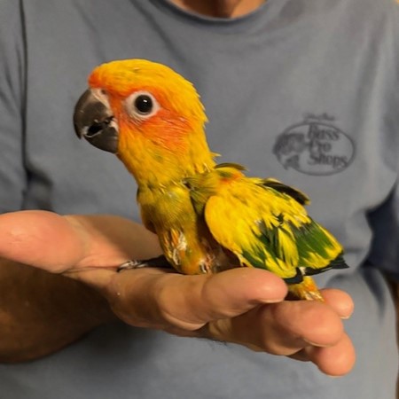 High Yellow Sun Conure - DNA Pending - being hand fed at this time - $550 weaned - will be weaned to eat a pellet diet - $50 deposit will hold this bird until it is weaned and eating well on its own and ready to be shipped. Shipping is with Delta for $165 and the shipping container is $35. Payment through Zelle or PayPal. 139