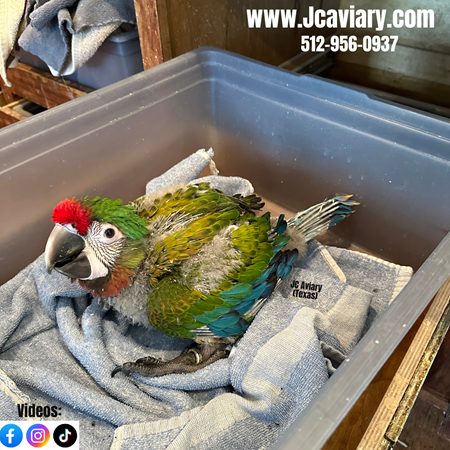 Accepting reservation on this very beautiful Shamrock macaw baby. He/she is currently being hand-fed and will be fully trained as well. Baby will be on a healthy diet of organic pellets and vegetables. All our babies are very well socialized, tame and sweet. Please visit our website for full detailed info on these babies -- www.Jcaviary.com-- Please call us to reserve your baby !! 512-956-0937 - Shipping available via Delta Airlines-- All babies are DISEASE TESTED and come with avian vet documents as well. (Deposit: $2500 required to reserve each baby) Videos available on Facebook: https://facebook.com/jcaviary
