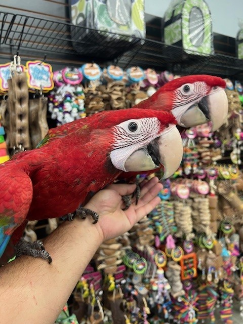 Just weaned and ready for its new is a baby Greenwing Macaw known as the "GENTLE GIANTS" these babies are big in size, they were pulled from the parents for hand feeding at 7 weeks old which makes them nice and big and healthy. They make great family pet companions as they are very social and cuddly birds. For more info call 773-317-3785.
