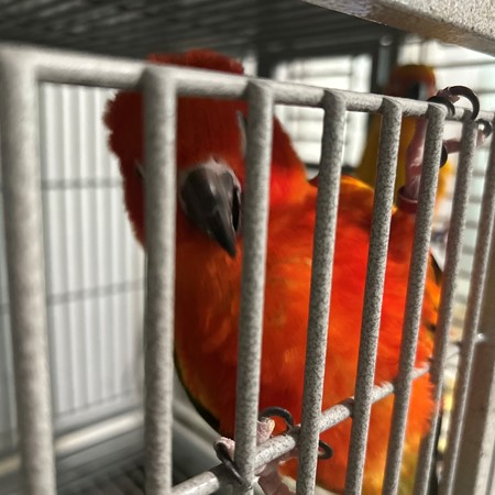 Dna’d male red factor sun conure. Hatched 2018. Not tame, would make a great breeder!