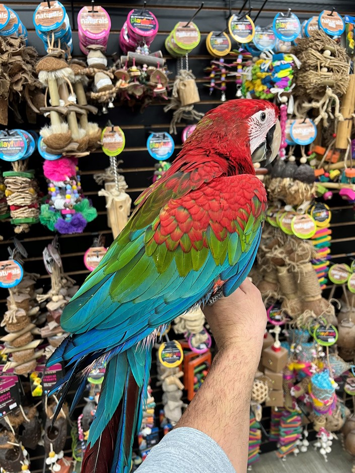 Just weaned and ready for its new is a baby Greenwing Macaw known as the "GENTLE GIANTS" these babies are big in size, they were pulled from the parents for hand feeding at 7 weeks old which makes them nice and big and healthy. They make great family pet companions as they are very social and cuddly birds. For more info call 773-317-3785.