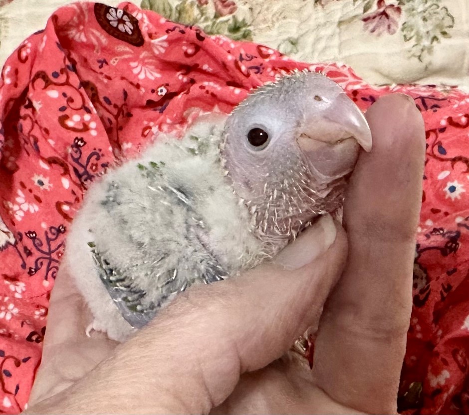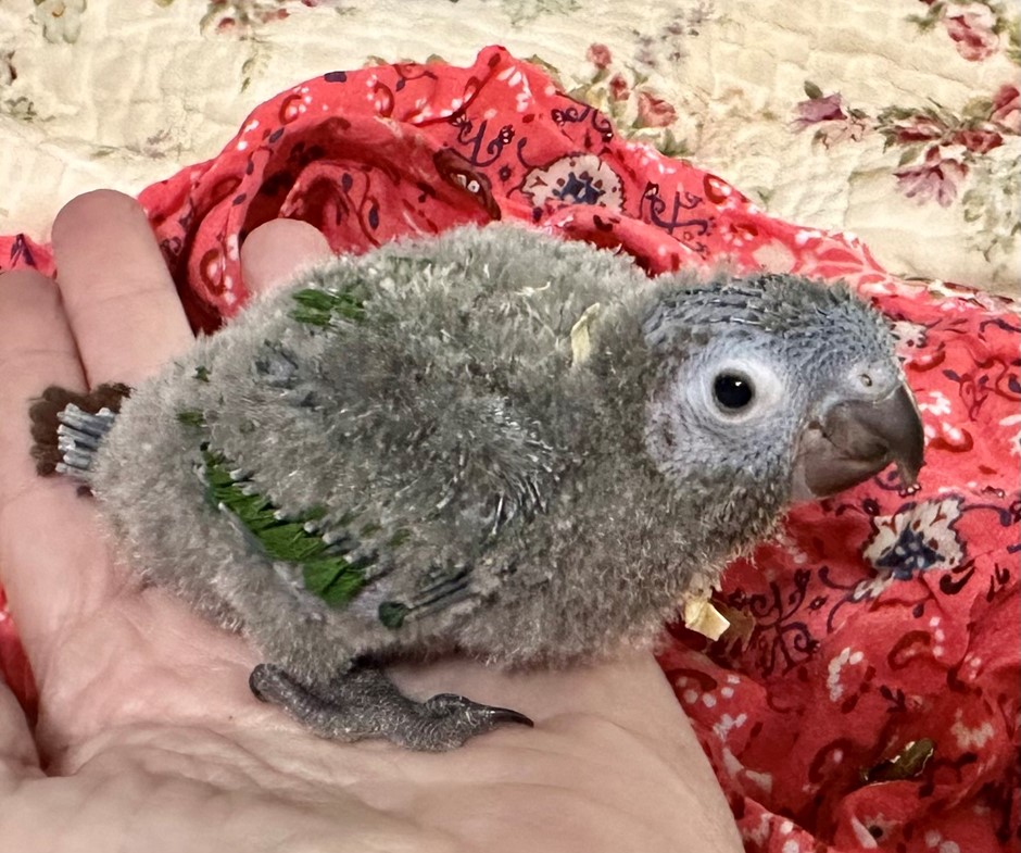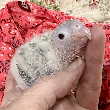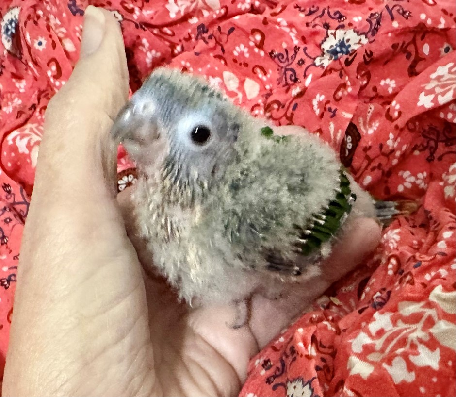 I have three beautiful baby greencheeks I am hand feeding. They will be ready to go home before Christmas. They are different mutations. Most likely, one regular greencheek, one Yellowsided greencheek and one Pineapple or Cinnamon greencheek. It’s too early to be able to tell for sure. These babies will be fully weaned and eating mixed fruits and vegetables and zupreme pellets.