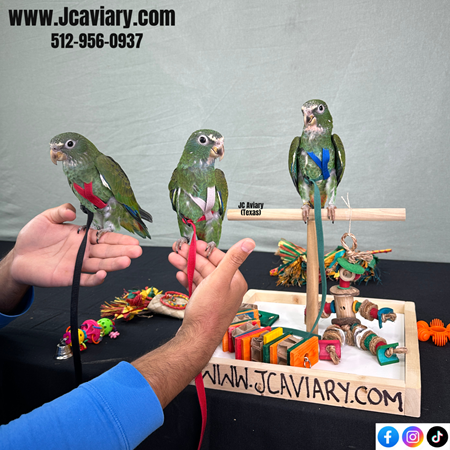 Incredibly sweet and fully trained White capped pionus babies ready now for their forever homes. They are weaned on a healthy diet of organic pellets and vegetables. All our babies are very well socialized, tame and sweet. Please visit our website for full detailed info on these babies -- www.Jcaviary.com-- Please call us to reserve your baby !! 512-956-0937 - Shipping available via Delta Airlines-- All babies are DISEASE TESTED and come with avian vet documents as well. (Deposit: $1500 required to reserve each baby) Videos available on Facebook: https://facebook.com/jcaviary
