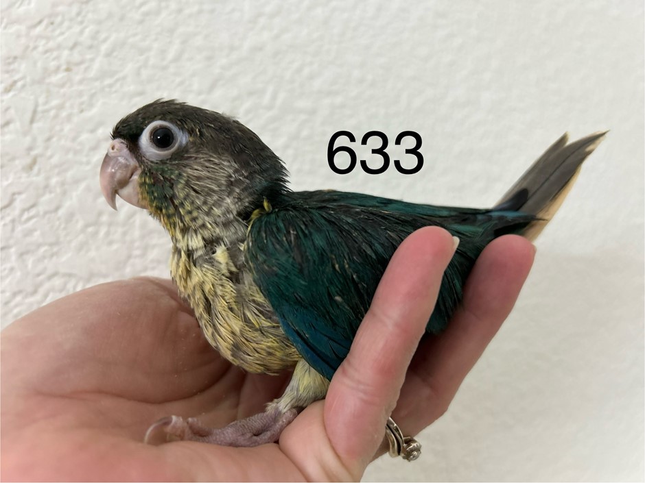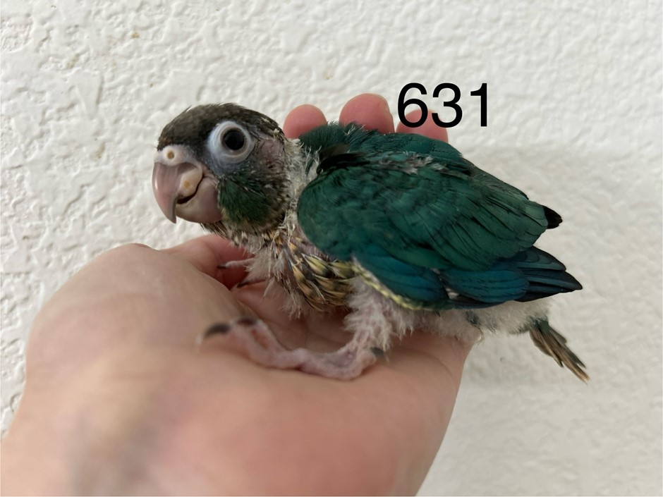 Beautiful baby yellowside turquoise and cinnamon turquoise green cheeks! Will be ready mid December. Waiting for DNA to come back to see if boys or girls!