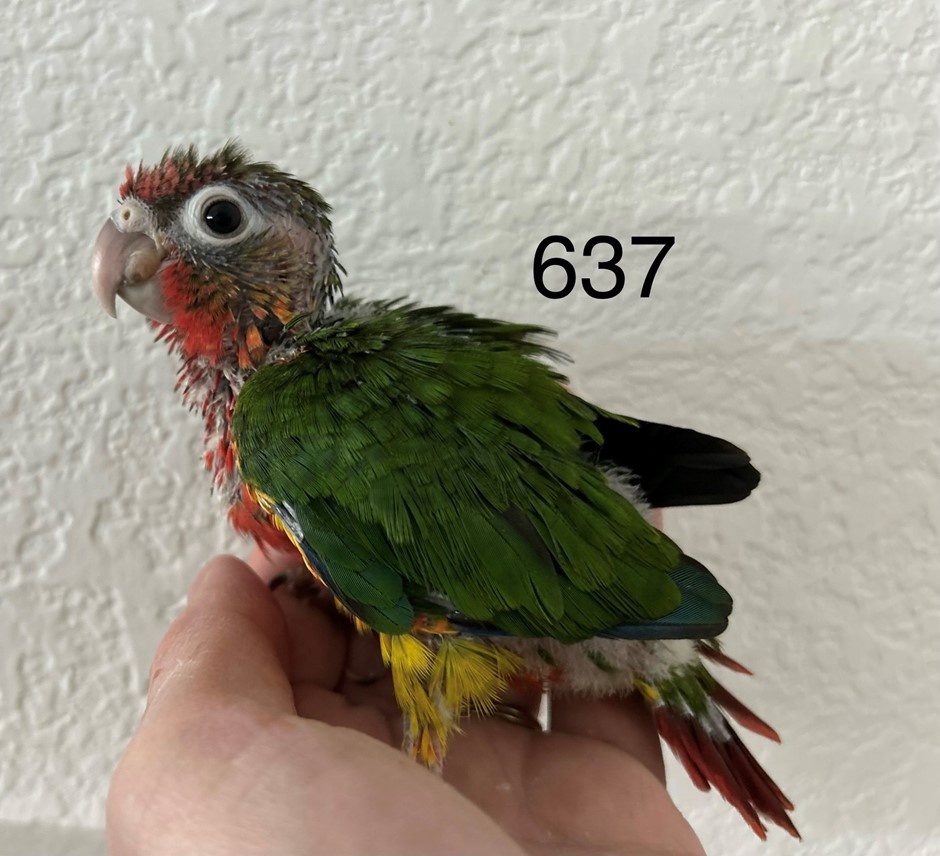 Dominant red yellowside, dominant red pineapple and yellowside dilute babies! Each Hand socialized/handfed. Will be ready mid to late December for their new homes! Dna pending to determine boy or girls! LaurasLittleParrots.com