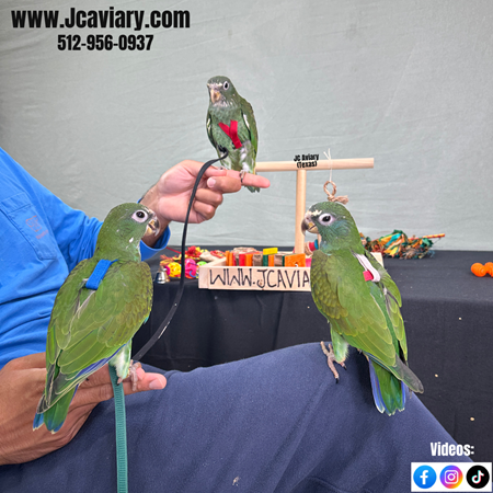 Incredibly sweet and fully trained White capped pionus babies ready now for their forever homes. They are weaned on a healthy diet of organic pellets and vegetables. All our babies are very well socialized, tame and sweet. Please visit our website for full detailed info on these babies -- www.Jcaviary.com-- Please call us to reserve your baby !! 512-956-0937 - Shipping available via Delta Airlines-- All babies are DISEASE TESTED and come with avian vet documents as well. (Deposit: $1500 required to reserve each baby) Videos available on Facebook: https://facebook.com/jcaviary