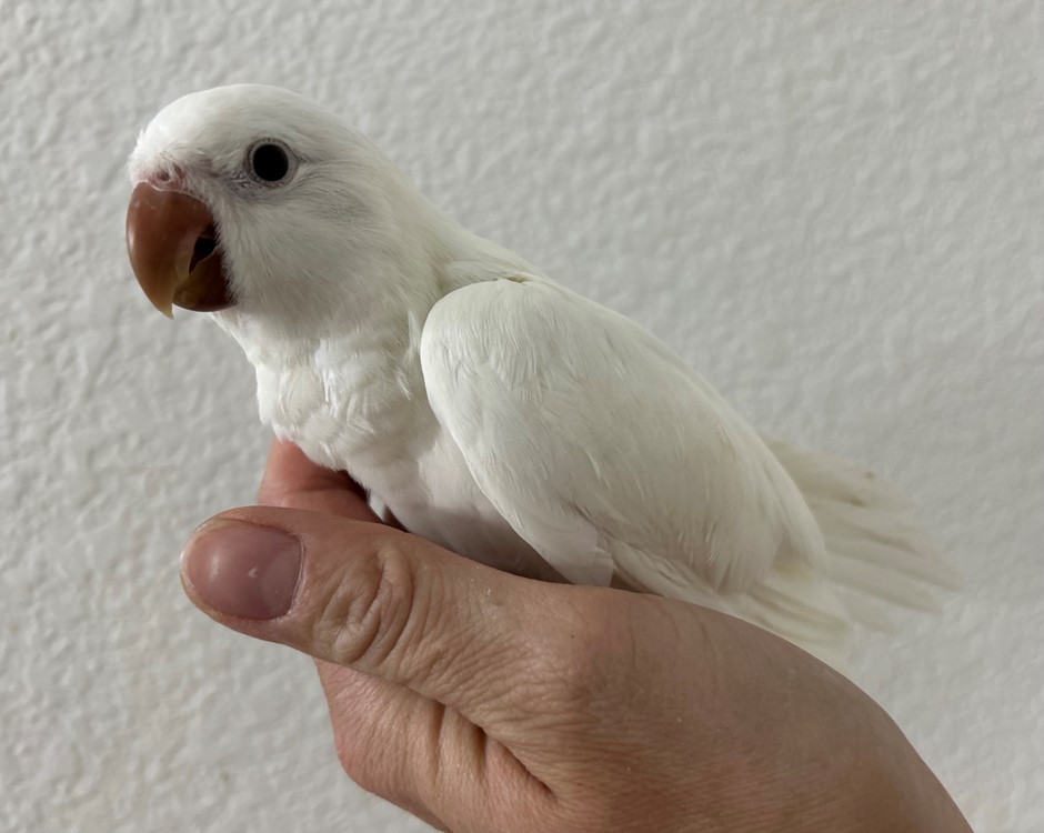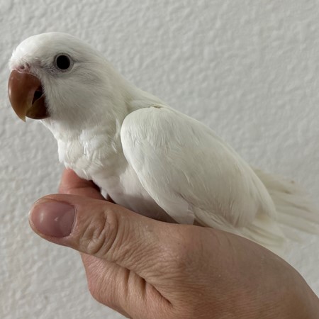 Super sweet hand raised, dark eye white (not albino) dnad female quaker! Weaned onto Roudybush mini pellets and fruit/ veggies. Last baby of the year! Can also text 972-804-3024