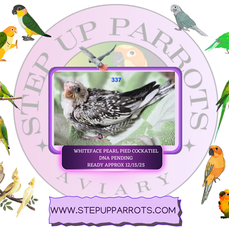 Step Up Parrots Aviary in Pensacola, Florida is excited to offer a charming, stunning Whiteface Pearl Pied cockatiel seeking a devoted forever family! We pride ourselves on raising happy, healthy, and well-socialized birds, and these little ones are no exception.