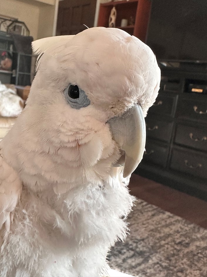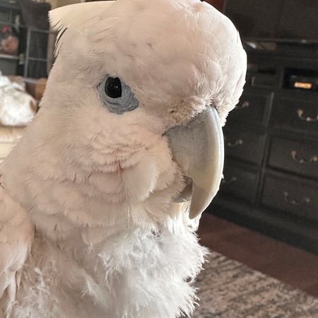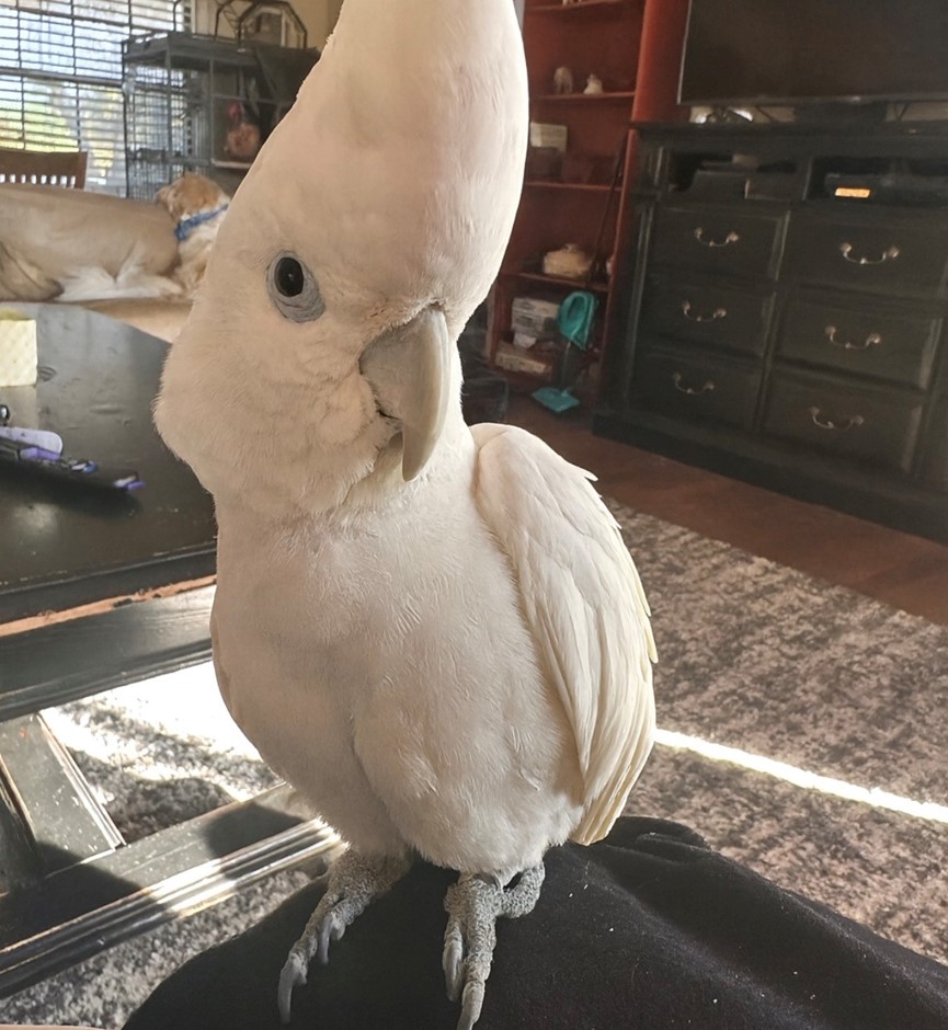 This is a precious 14 year old male. He likes men and women. But he prefers men. He is well behaved…… Especially for a Cockatoo.