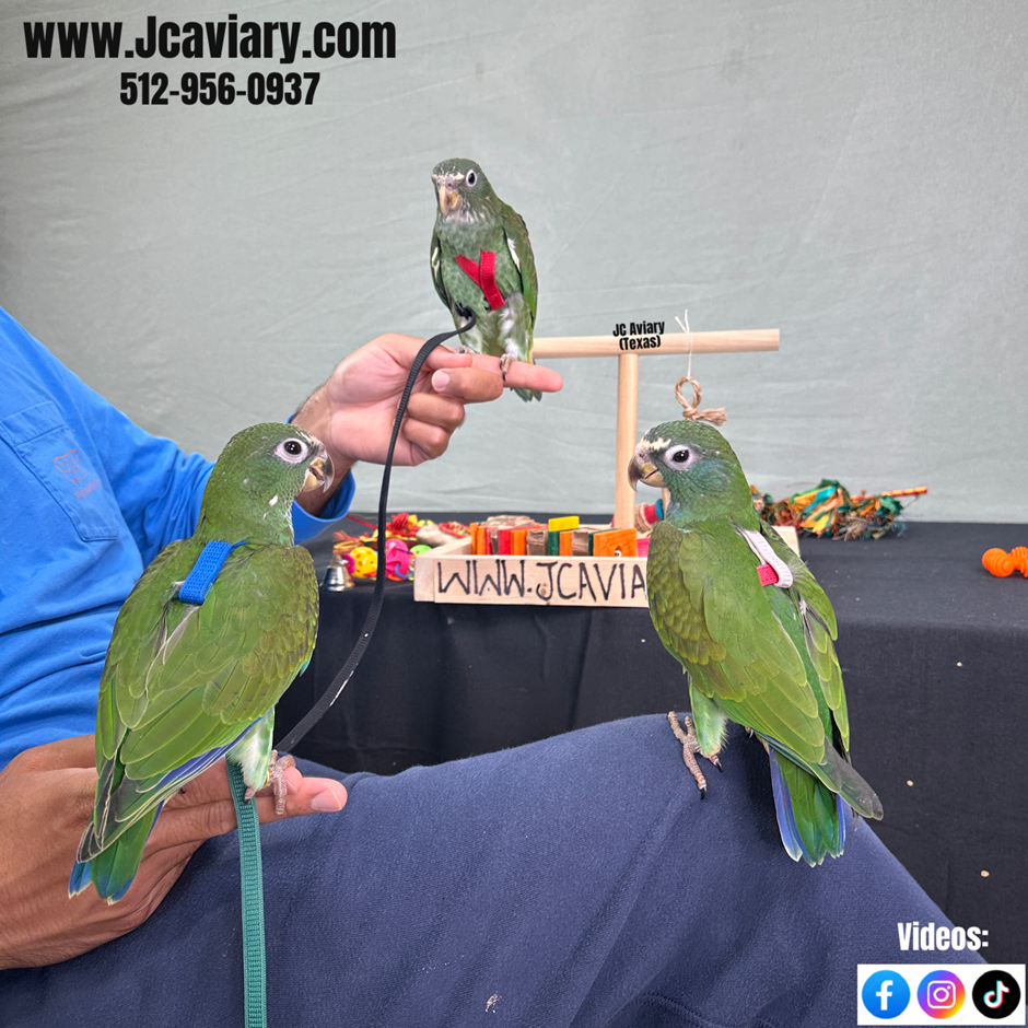Incredibly sweet and fully trained White capped pionus babies ready now for their forever homes. They are weaned on a healthy diet of organic pellets and vegetables. All our babies are very well socialized, tame and sweet. Please visit our website for full detailed info on these babies -- www.Jcaviary.com-- Please call us to reserve your baby !! 512-956-0937 - Shipping available via Delta Airlines-- All babies are DISEASE TESTED and come with avian vet documents as well. (Deposit: $1500 required to reserve each baby) Videos available on Facebook: https://facebook.com/jcaviary