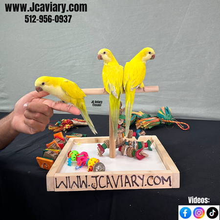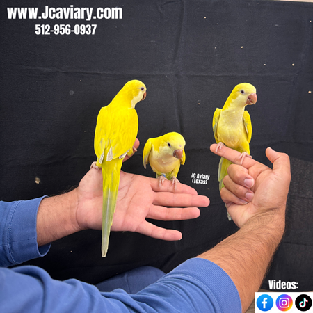 Incredibly sweet, hand-fed, tame, socialized yellow quaker parrots babies ready now for their forever homes. They are weaned on a healthy diet of organic pellets and vegetables. All our babies are very well socialized, tame and sweet. Please visit our website for full detailed info on these babies -- www.Jcaviary.com-- Please call us to reserve your baby !! 512-956-0937 - Shipping available via Delta Airlines-- All babies are DISEASE TESTED and come with avian vet documents as well. (Deposit: $300 required to reserve each baby) Videos available on Facebook: https://facebook.com/jcaviary