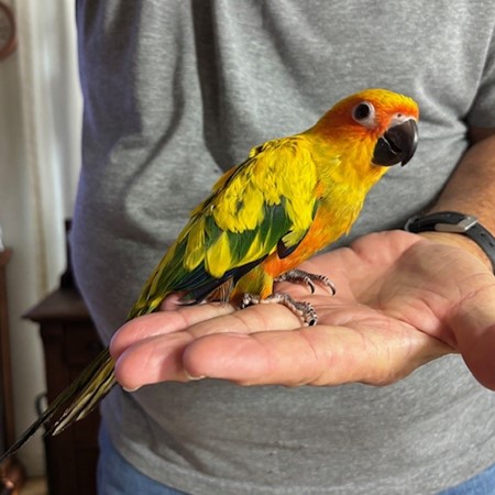 High Yellow Sun Conure - DNA Female - $550 - recently weaned from being hand fed - weaned to eat a pellet diet - ready to be shipped. Shipping is with Delta for $165 and the shipping container is $35. Payment through Zelle or PayPal. 139