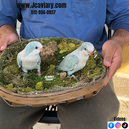 Incredibly sweet, hand-fed, tame blue quaker parrots babies ready now for their forever homes. They are weaned on a healthy diet of organic pellets and vegetables. All our babies are very well socialized, tame and sweet. Please visit our website for full detailed info on these babies -- www.Jcaviary.com-- Please call us to reserve your baby !! 512-956-0937 - Shipping available via Delta Airlines-- All babies are DISEASE TESTED and come with avian vet documents as well. (Deposit: $300 required to reserve each baby) Videos available on Facebook: https://facebook.com/jcaviary