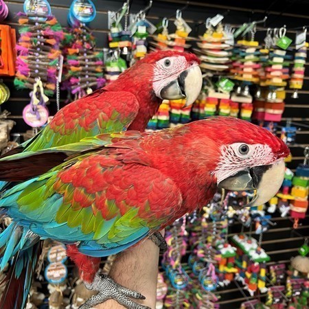Just weaned and ready for its new is a baby Greenwing Macaw known as the "GENTLE GIANTS" these babies are big in size, they were pulled from the parents for hand feeding at 7 weeks old which makes them nice and big and healthy. They make great family pet companions as they are very social and cuddly birds. For more info call 773-317-3785.