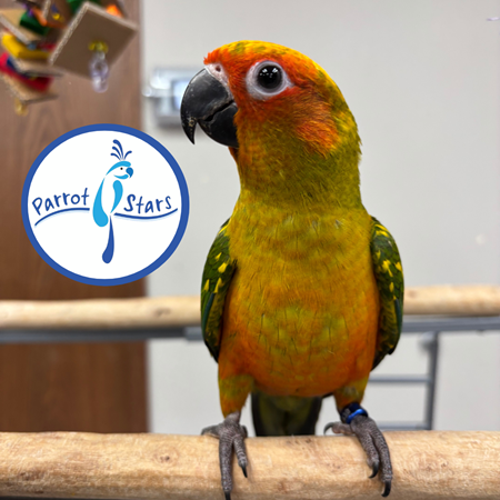 Baby Sun Conure (Aratinga solstitialis) Available! Sun Conures are native to South America. Sun Conures are famously known for their stunning coloration. They are extremely social and can be very charismatic. Suns have a very high pitch screech, so a high noise level tolerance is a must. The bigger the more ideal for the health of your parrot. At Parrot Stars we focus on education, nutrition, and conservation. We work very hard to help educate our customers on parrot companionship. Prior to taking a bird home, we will provide information on proper housing, creating a safe environment, diet, training and much more. No question will go unanswered. Every hand fed baby is weaned on to a high variety diet. They are weaned onto fruits and veggies, a soak and sprout mix made here in store, high variety seed mix that is also made in store, and naturally colored pellets. If you have questions regarding this baby, or any others that we have available, please give us a call at 224-735-7537! Feel free to follow us on Instagram @parrotstars for more pictures, videos and information and explore our website www.parrotstars.com to see all of our available birds.