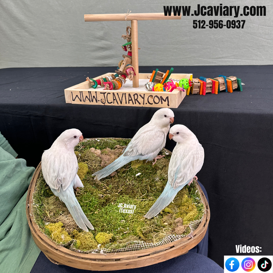 Incredibly sweet, hand-fed, tame blue pallid OPALINE quaker parrots babies ready now for their forever homes. They are weaned on a healthy diet of organic pellets and vegetables. All our babies are very well socialized, tame and sweet. Please visit our website for full detailed info on these babies -- www.Jcaviary.com-- Please call us to reserve your baby !! 512-956-0937 - Shipping available via Delta Airlines-- All babies are DISEASE TESTED and come with avian vet documents as well. (Deposit: $300 required to reserve each baby) Videos available on Facebook: https://facebook.com/jcaviary