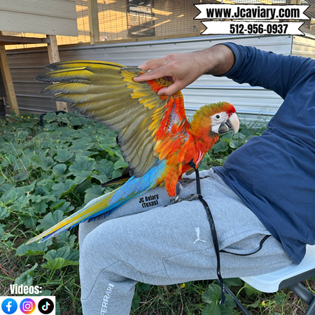 Please call for details... Serious inquires only!! Incredibly sweet and fully trained rare- Yellow Dominant Camelot macaw. He's on a healthy diet of organic pellets and vegetables. All our babies are very well socialized, tame and sweet. Please visit our website for full detailed info on these babies -- www.Jcaviary.com-- Please call us to reserve your baby !! 512-956-0937 - Shipping available via Delta Airlines-- All babies are DISEASE TESTED and come with avian vet documents as well. (Deposit: $5000 required to reserve this baby) Videos available on Facebook: https://facebook.com/jcaviary