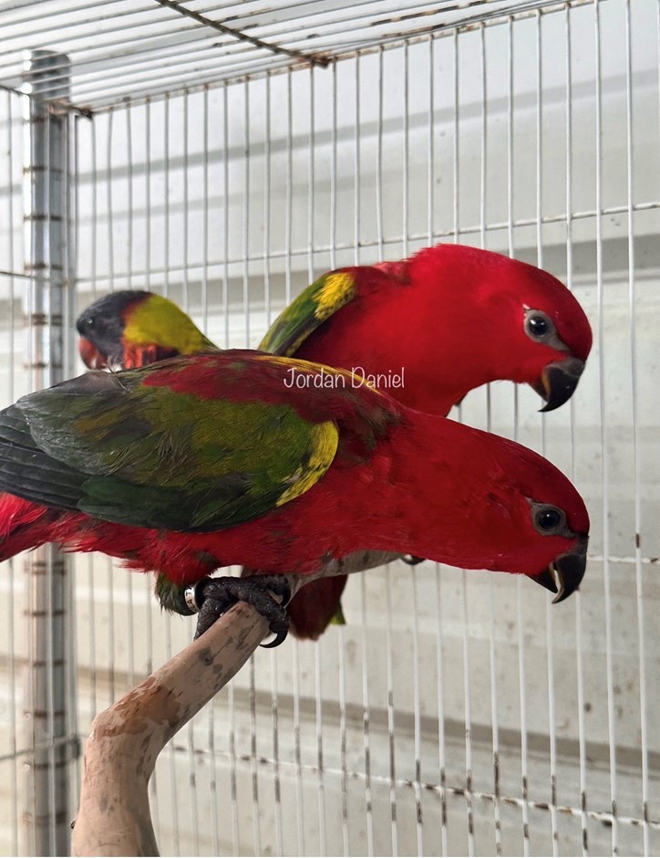 Chattering Lories 2025 male & 2024 female. Unrelated pair. Perfect for someone looking to work with a rare species of Lory. Weaned onto my high quality nectar formulas (LoriesChoice.com), low iron fruits and some veggies. Serious inquiries only. Can ship at buyers expense.