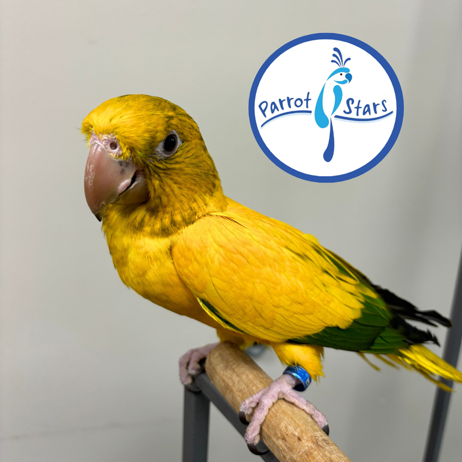 "Scientific Name: Guaruba guarouba Native Range: South America The Golden Conure, also known as the Golden Parakeet or Queen of Bavaria Conure, is a medium-sized parrot species within the family Psittacidae. It is characterized by its bright yellow plumage contrasted with green primary flight feathers. In the wild, Golden Conures inhabit humid lowland rainforests in northern Brazil, particularly within the eastern Amazon Basin. They nest in tree cavities and are often associated with forest edges and areas undergoing seasonal flooding. IUCN Conservation Status: Vulnerable At Parrot Stars, we prioritize education, welfare, and responsible parrot ownership to help ensure every bird finds and thrives in a forever home. Before taking home any parrot, we provide comprehensive guidance on proper caging and setup, positive reinforcement training, household safety, nutrition, and enrichment. Parrots in captivity are still wild animals with all their natural instincts. Your overall success and experience with any species of companion parrot is greatly impacted by positive reinforcement training. A parrot’s behavior reflects both the environment they live in and the training they receive. All of our hand-fed babies are hatched and raised in our own breeding facility and weaned onto a diverse, high-variety diet. Our parrots are never clipped and are fully flighted. Follow our Parrot Stars Podcast to learn all about our parrots, our purchase process, and our philosophy of parrot care."