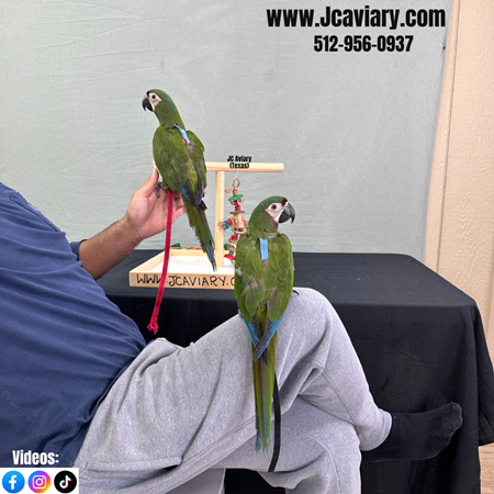 Incredibly sweet, hand-fed, tame and well trained Severe macaw babies ready now for their forever homes. They are weaned on a healthy diet of organic pellets and vegetables. All our babies are very well socialized, tame and sweet. Please visit our website for full detailed info on these babies -- www.Jcaviary.com-- Please call us to reserve your baby !! 512-956-0937 - Shipping available via Delta Airlines-- All babies are DISEASE TESTED and come with avian vet documents as well. (Deposit: $2500 required to reserve each baby) Videos available on Facebook: https://facebook.com/jcaviary